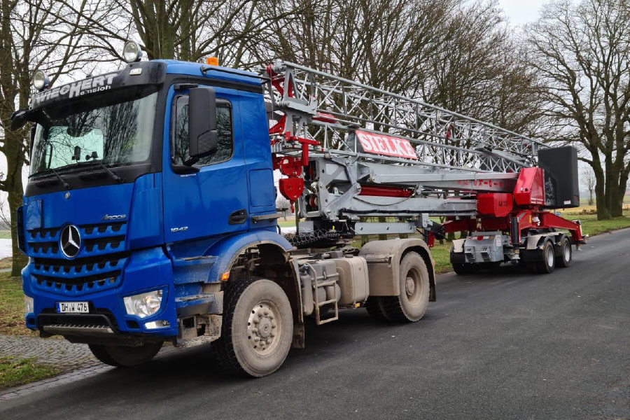 - Baustoffauflieger mit Rollkran
